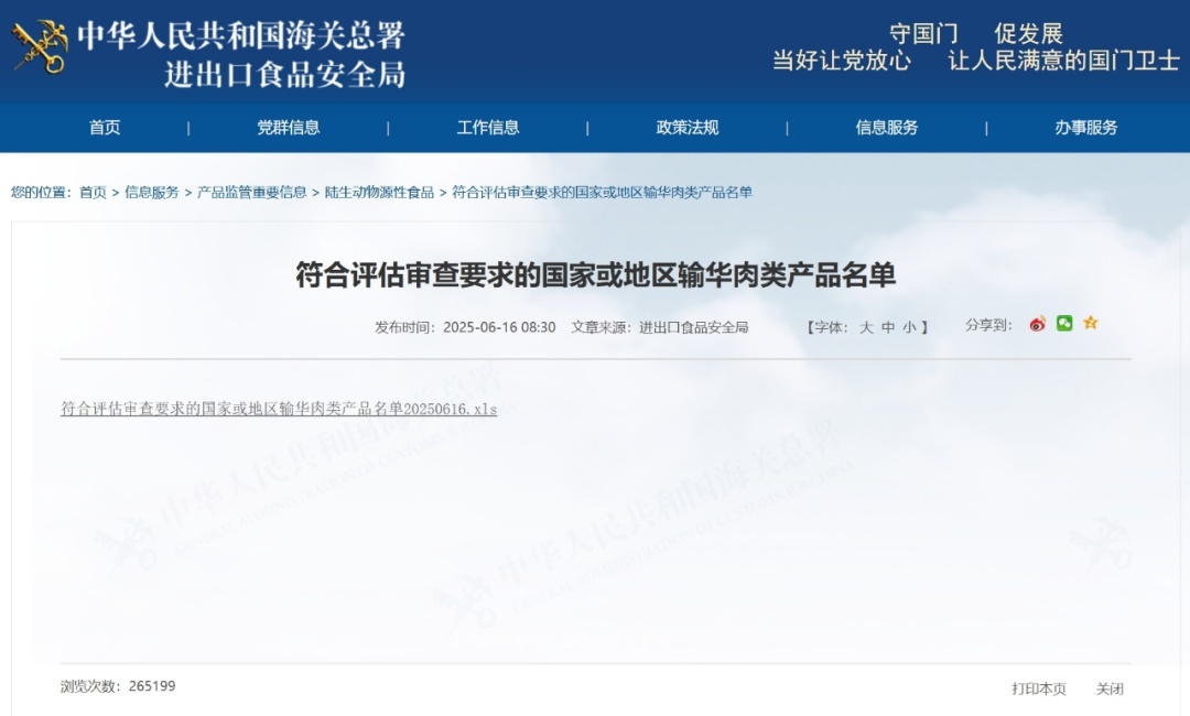 近日,海关总署更新《符合评估审查要求的国家或地区输华肉类产品名单》,新增美国猪肉、禽肉总计106家企业自2025年 6 月12日及之后生产的符合中国要求的肉类产品输华。